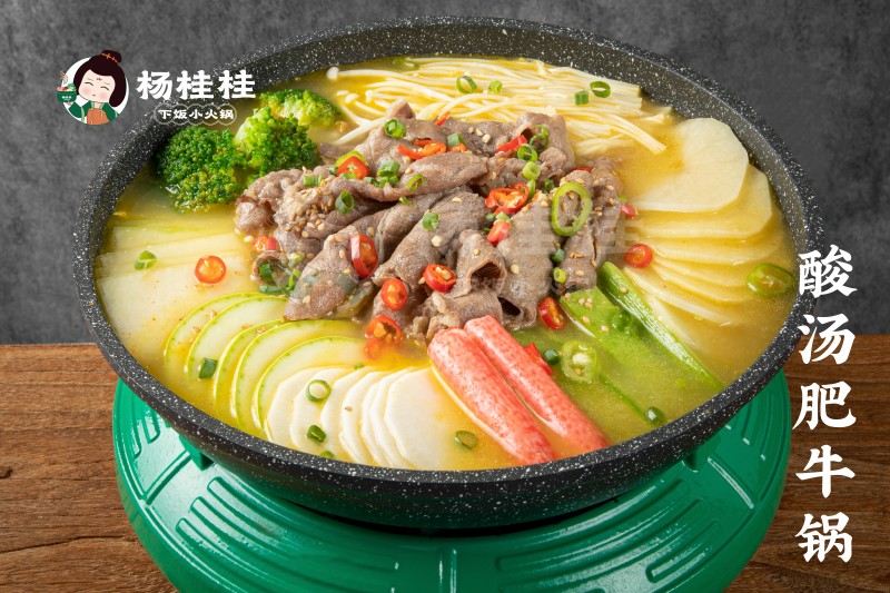 杨桂桂下饭小火锅的店铺装修风格以“新中式”为主,简约而不失高雅,处处透露着中国传统文化的美学。在产品方面,杨桂桂下饭小火锅注重产品的品质和口感。他们拥有专业的研发团队和制作人员,不断研发新的产品,提升产品质量和口感。同时,他们还会对合作商进行专业的人员培训,包括产品的学习制作和店铺的运营管理等方面,让合作商真正掌握门店操作。