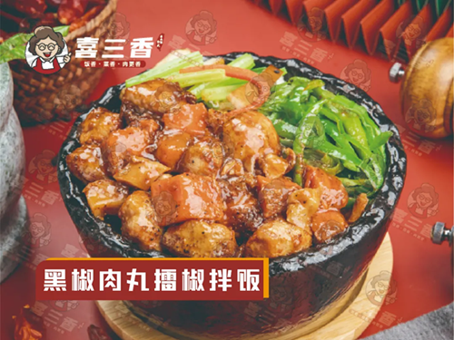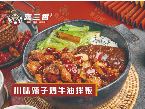 喜三香秉承“10年专注一碗好饭”的理念,以真材实料的良心品质,不断优化的产品研发,打造铁板卤肉饭+擂椒拌饭+牛油拌饭三大系列,解决都市上班族“好好吃饭”的问题。
