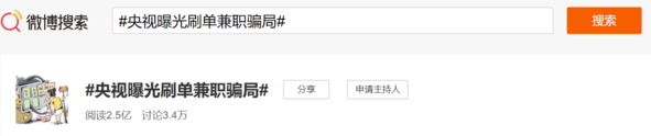 712日下午,一则#央视曝光刷单兼职骗局#的话题冲上热搜。