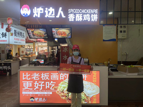 小吃前景好,当初创业我就选定了开一家小吃店 其实开店不难,选择好的项目才是最重要的。当初选择炉边人,一来是觉得产品好吃,香酥鸡饼的研发性强,加上自己也喜欢,二来是信任炉边人这个品牌,300多家店存活率有95%,再一个是门店投入小,风险小,方方面面都有公司支持。公司的专业团队在选址时也提供了很大的帮助,通过客流采集分析以及人流的充分评估,帮我筛选合适建店位置,这个合伙人我是当得很安心!